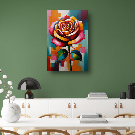 Kleurrijke Abstractie van een Roos canvas met baklijst