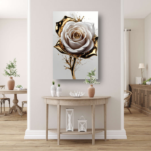 Gouden Roos Elegantie in Monochroom canvas met baklijst