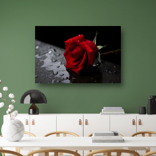 Rode Roos op Donkere Achtergrond canvas met baklijst