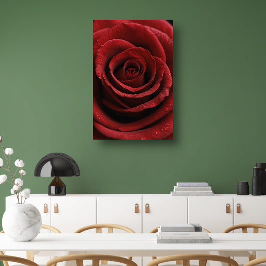 Dieprode Roos met Fluweelachtige Bladeren canvas