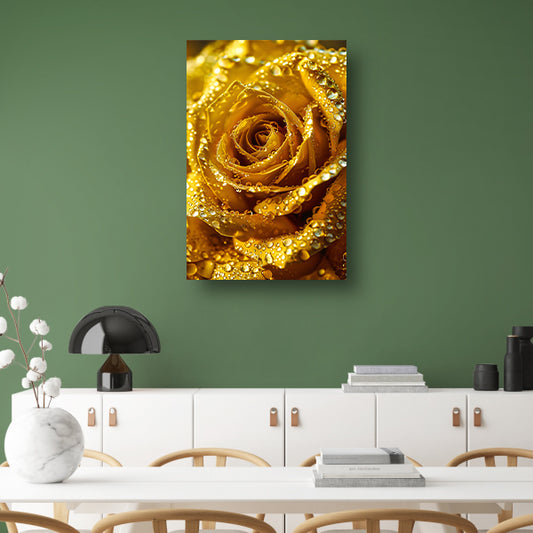 Gouden roos met glinsterende dauwdruppels close-up acrylglas