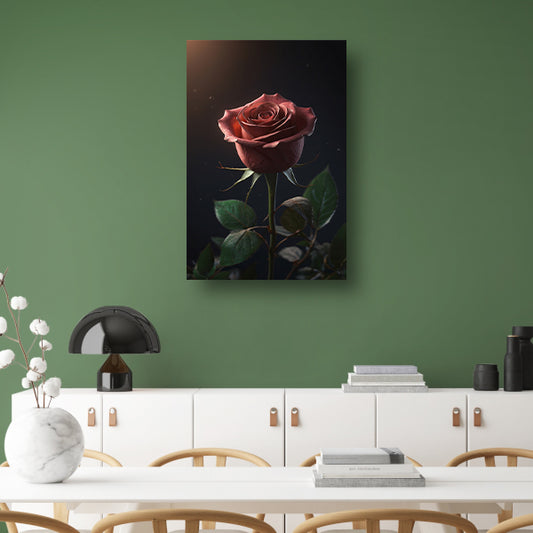 Dieprode Roos met Fluweelachtige Bladeren acrylglas