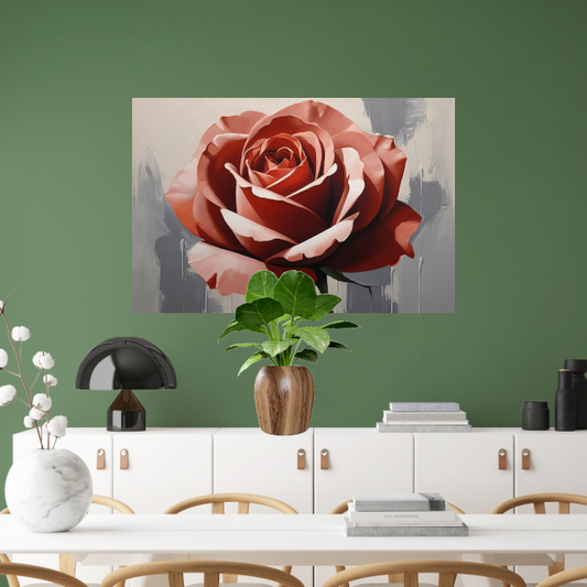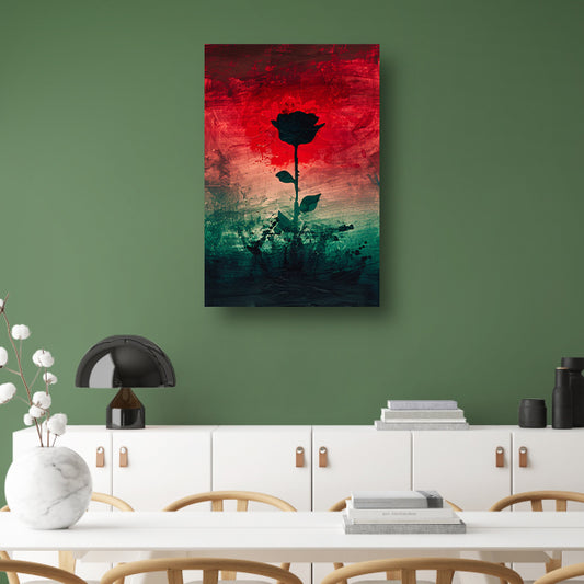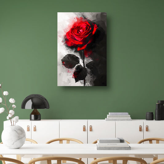 Expressieve rode roos met abstracte achtergrond canvas met baklijst