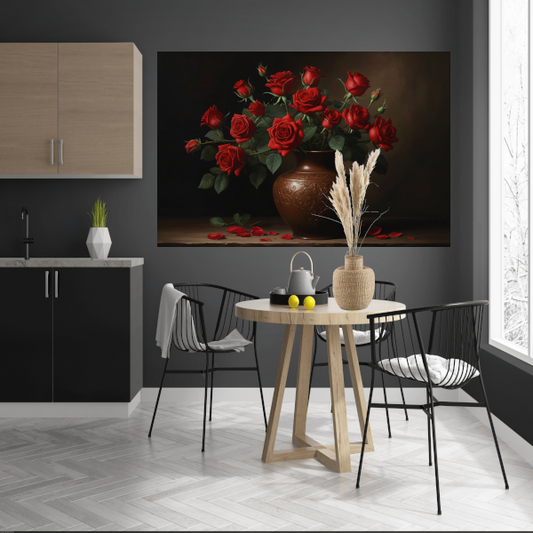 Stille Elegance: Rode Rozen in Sierlijke Vaas acrylglas