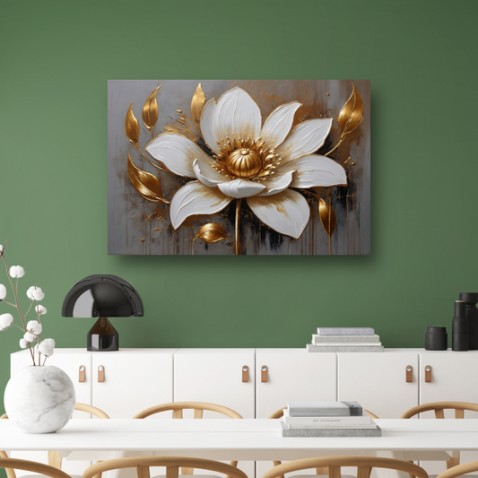 Elegante Witte Bloem met Gouden Accenten acrylglas