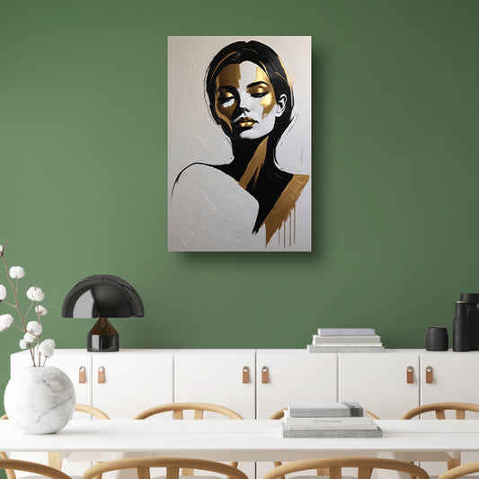 Vrouwelijk Portret in Zwart, Wit en Goud Acrylglas
