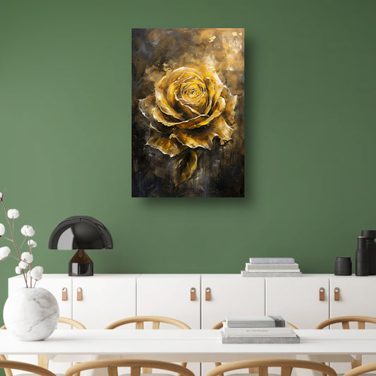Majestueuze Gouden Roos op Donkere Abstracte Achtergrond canvas met baklijst