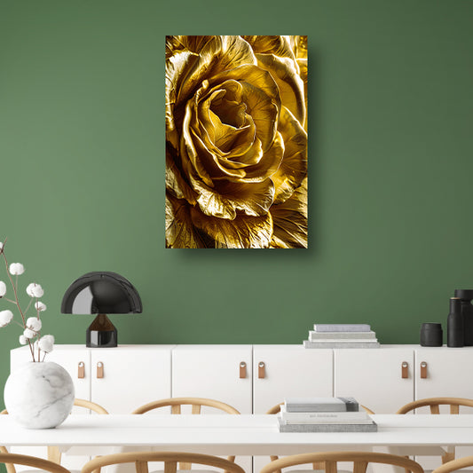 Gouden roos met delicaat licht en schaduwspel canvas met baklijst