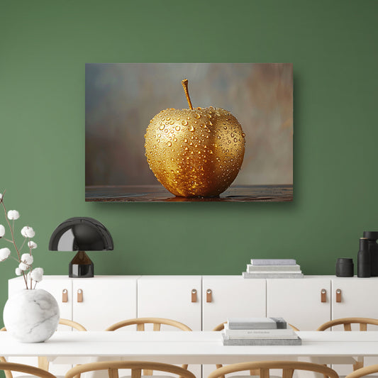 Gouden Appel Bedekt met Sprankelende Waterdruppels canvas met baklijst