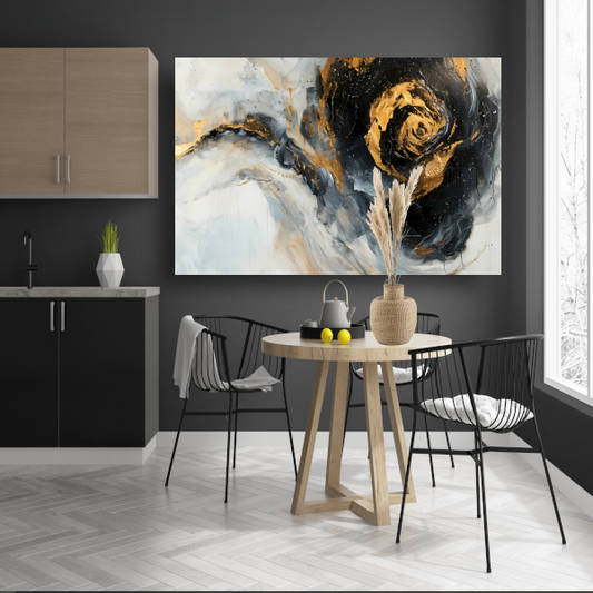 Breng een vleugje luxe en elegantie in je interieur met onze gouden kunstcollectie. Of je nu houdt van abstracte patronen of moderne schilderijen, deze collectie heeft iets bijzonders voor iedere smaak. Laat je inspireren door de warme tinten en verfijnde accenten die elke ruimte meteen stijlvol maken. Van sprankelende gouden glitters op donkere lippen tot abstracte watervallen met gouden details, elk kunstwerk vertelt zijn eigen verhaal. Hang een unieke poster, canvas schilderij of plexiglas schilderij aan je muur en transformeer je woonkamer, slaapkamer of kantoor in een luxe oase. Combineer verschillende stijlen of kies je favoriet, het resultaat zal altijd een echte blikvanger zijn! Kortom, met deze gouden kunstwerken haal je meer dan alleen decoratie in huis. Je creëert een sfeer van warmte, klasse en creativiteit.