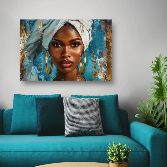 Elegante Vrouw met Gouden Hoofddoek canvas met baklijst