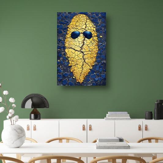 Gouden Aardappel met Zonnebril op Blauwe Achtergrond canvas