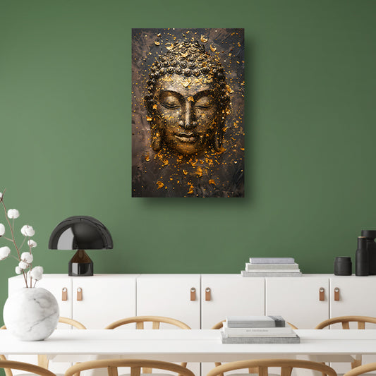 Gouden Boeddha gezicht omgeven door vallende bladeren canvas