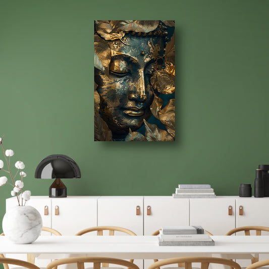 Blauwe en Gouden Boeddha met Bladmotieven canvas