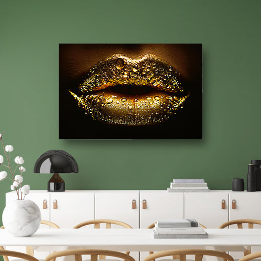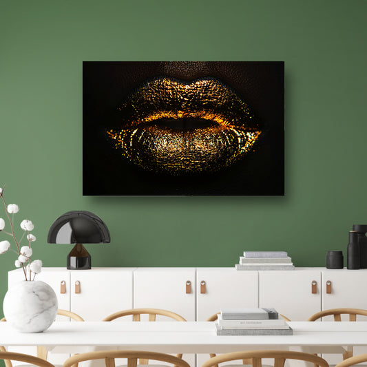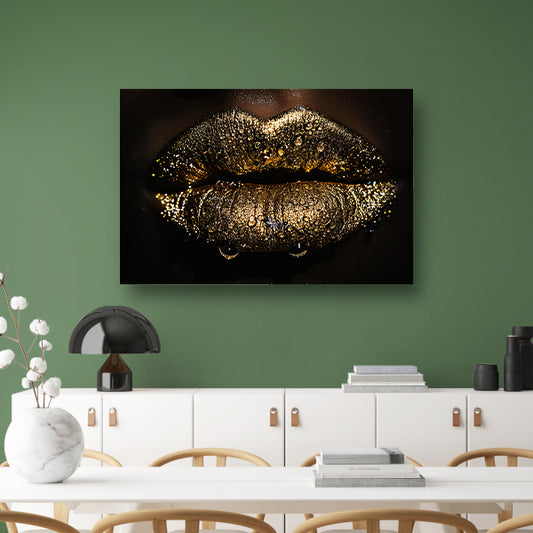 Gouden Glitters en Druppels op Donkere Lippen canvas