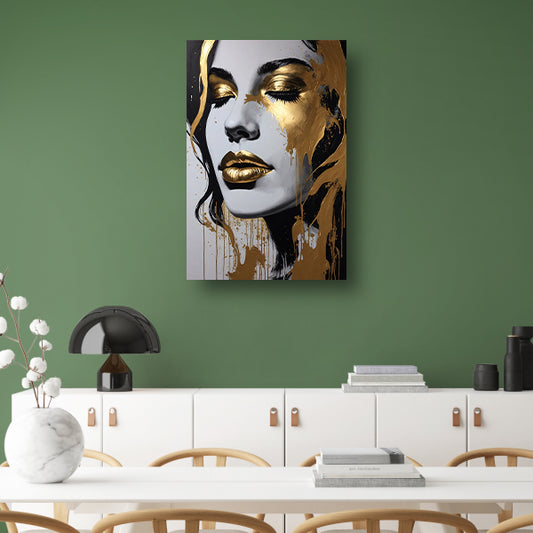 Vrouwengezicht in Zwart, Wit en Goud poster