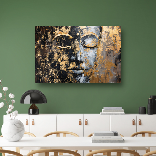 Boeddha portret met gouden en zwarte abstracte achtergrond poster
