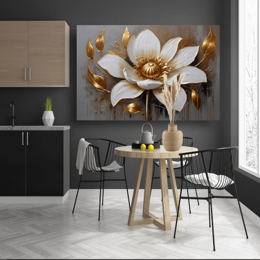 Elegante Gouden en Zilveren Bloem Kunst poster