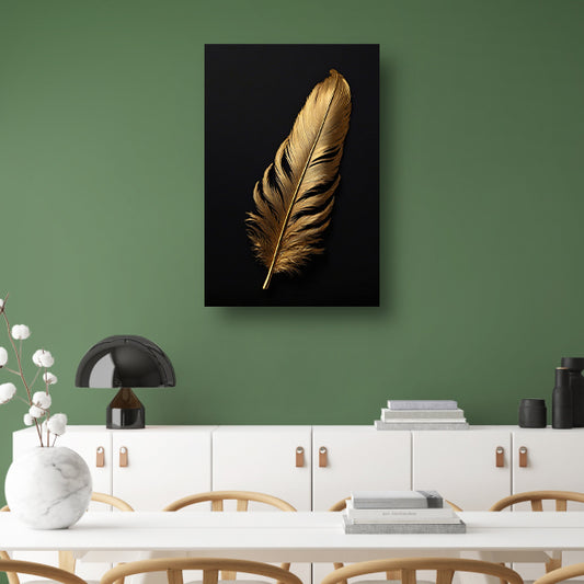Glimmende Gouden Veer op Zwarte Achtergrond poster