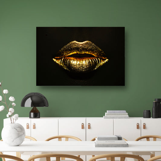 Donkere achtergrond met stralende gouden lippen acrylglas