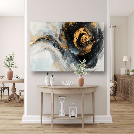 Breng een vleugje luxe en elegantie in je interieur met onze gouden kunstcollectie. Of je nu houdt van abstracte patronen of moderne schilderijen, deze collectie heeft iets bijzonders voor iedere smaak. Laat je inspireren door de warme tinten en verfijnde accenten die elke ruimte meteen stijlvol maken. Van sprankelende gouden glitters op donkere lippen tot abstracte watervallen met gouden details, elk kunstwerk vertelt zijn eigen verhaal. Hang een unieke poster, canvas schilderij of plexiglas schilderij aan je muur en transformeer je woonkamer, slaapkamer of kantoor in een luxe oase. Combineer verschillende stijlen of kies je favoriet, het resultaat zal altijd een echte blikvanger zijn! Kortom, met deze gouden kunstwerken haal je meer dan alleen decoratie in huis. Je creëert een sfeer van warmte, klasse en creativiteit.