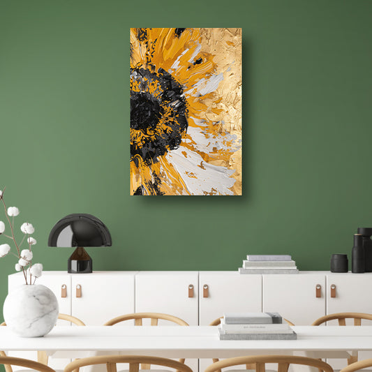 Dynamische abstracte zonnebloem in goud en zwart acrylglas