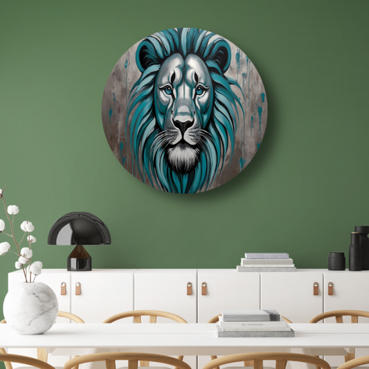 Turkoois en Zilver Abstracte Leeuw forex muurcirkel
