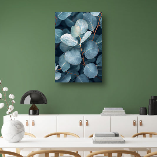 Elegante eucalyptusbladeren in zilveren en blauwe tinten acrylglas