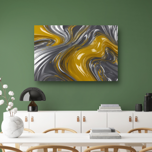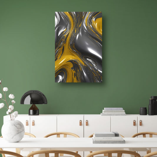 Dynamische Abstractie in Zilver en Geel acrylglas