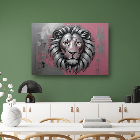 Abstracte Zilveren Leeuw met Roze Achtergrond acrylglas