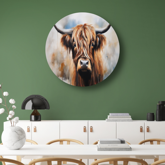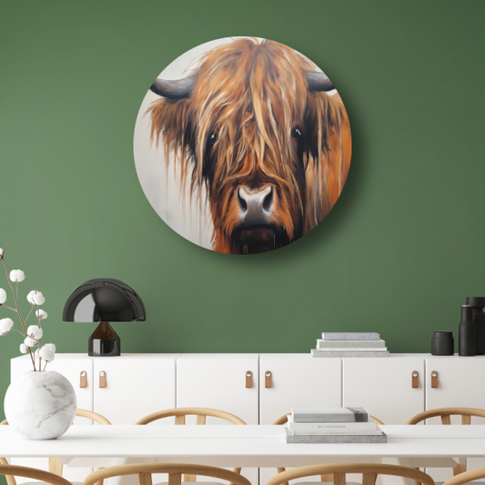 Schotse Hooglander Portret in Olieverf aluminium muurcirkel