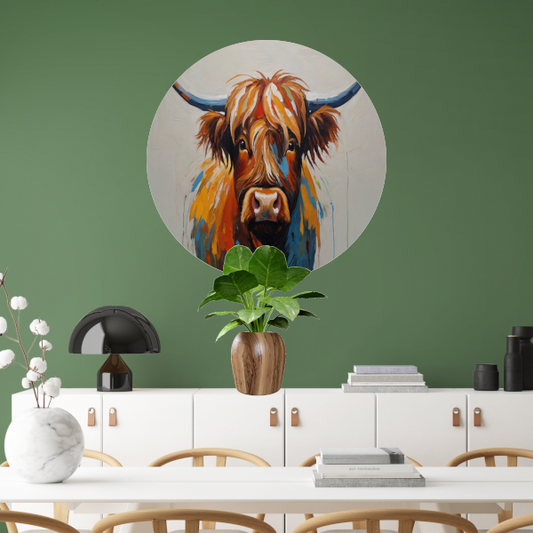Kleurrijke moderne schilderij van Schotse Hooglander forex muurcirkel