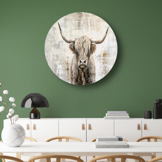 De Schotse Hooglander muurcirkels combineren landelijke charme met moderne eenvoud in ronde wanddecoratie. Je vindt er uiteenlopende stijlen: sobere zwart-wit lijntekeningen, indrukwekkende close‑ups met een rustgevende blik, en kleurrijke, expressieve weergaven van dit karaktervolle dier. Elk ontwerp straalt kracht, zachtheid en sfeer uit. Ideaal voor wie natuur en stijl wil verenigen. Deze wandcirkels zijn gemaakt van licht, stevig forex, dat goed geschikt is voor binnen én buiten en zorgen dat kleuren en details langdurig helder blijven, dankzij UV‑ en waterbestendigheid. Ze zijn eenvoudig op te hangen, bijvoorbeeld met een ophangsysteem of zelfs dubbelzijdige tape, waardoor je in een handomdraai een warme, decoratieve eyecatcher toevoegt aan je ruimte