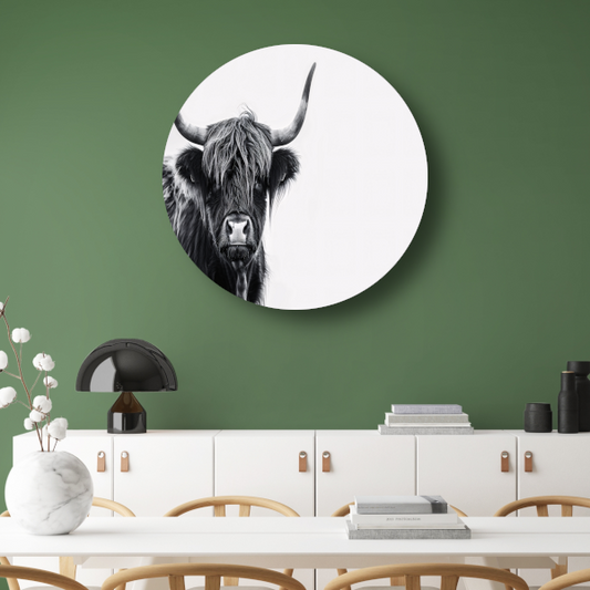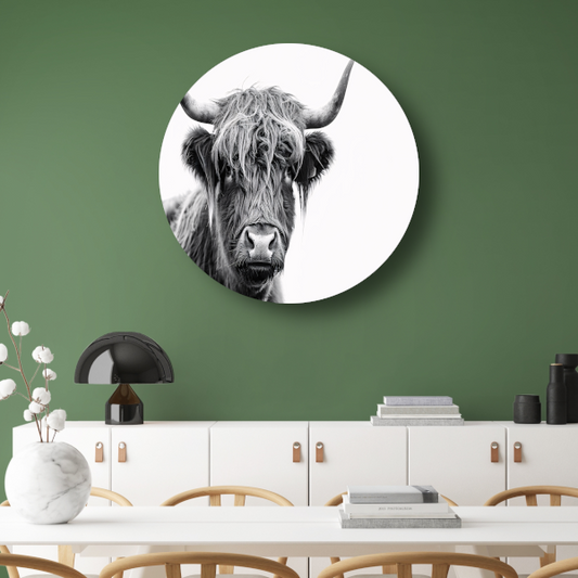 Majestueuze Schotse Hooglander in Hoog Contrast aluminium muurcirkel