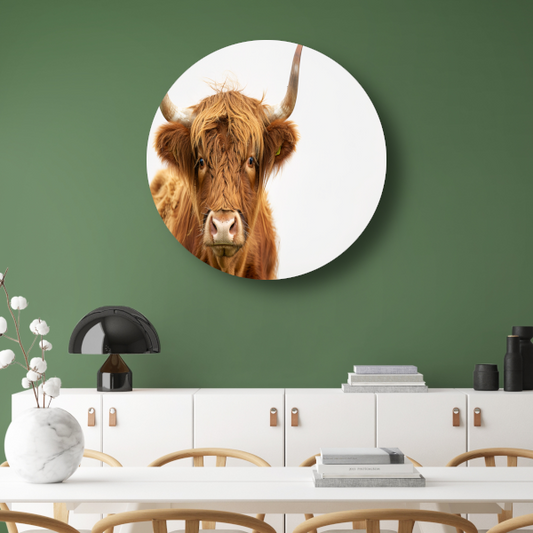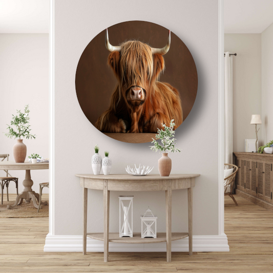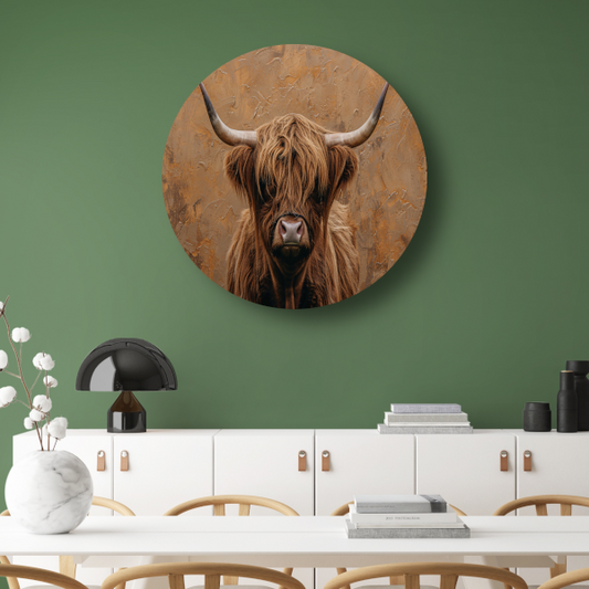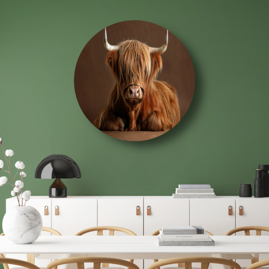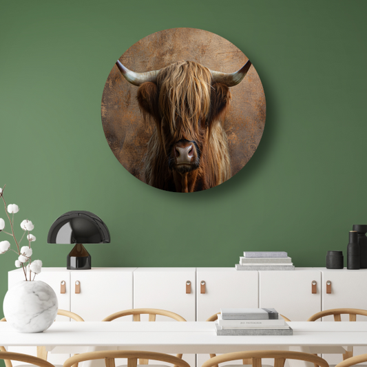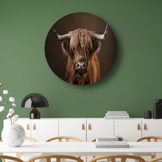Schotse Hooglander - Majestueuze Blik en Vacht aluminium muurcirkel