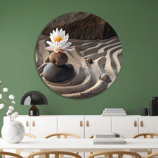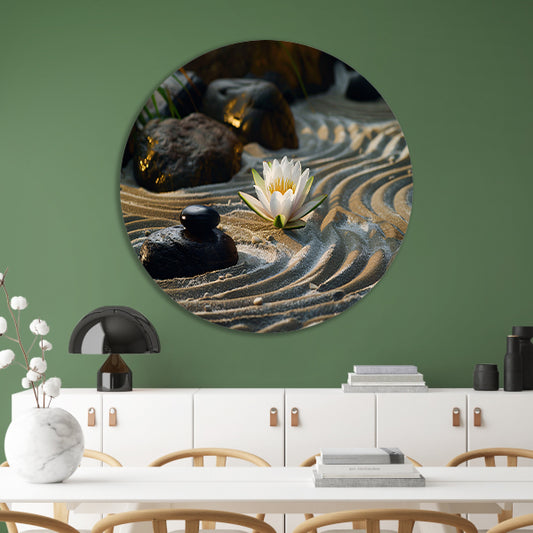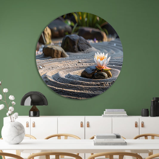 Serene waterlelie in zen-tuin met zand forex muurcirkel