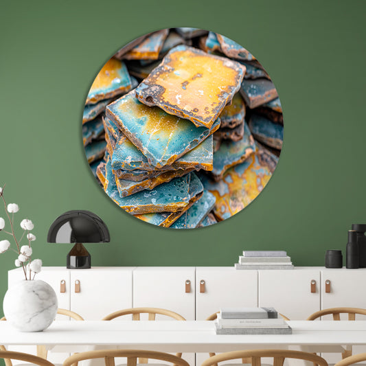 Verweerde tegels met kleurrijk patroon en textuur forex muurcirkel