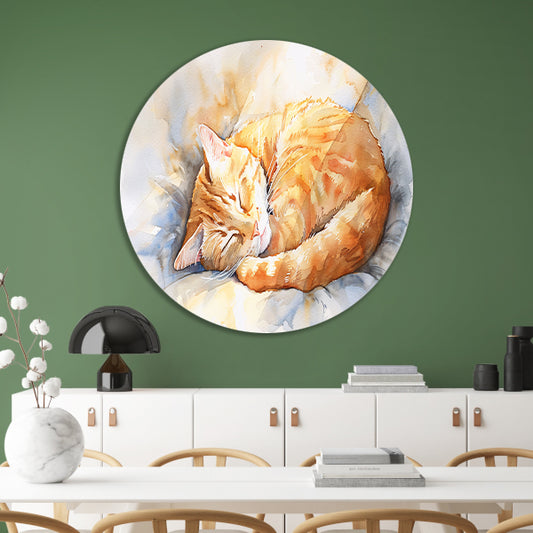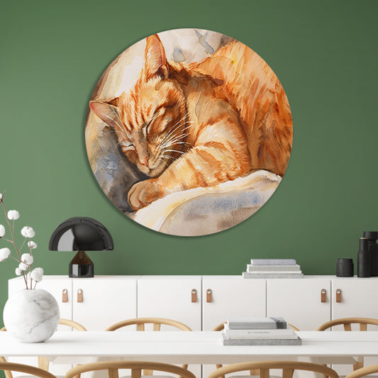 Slapende Kat in Warme Aquarelkleuren forex muurcirkel