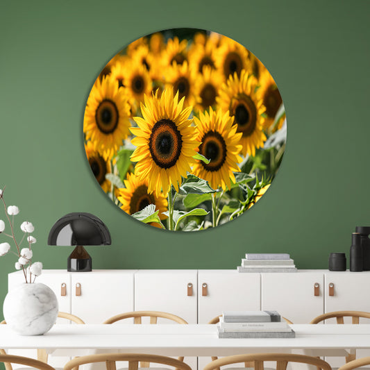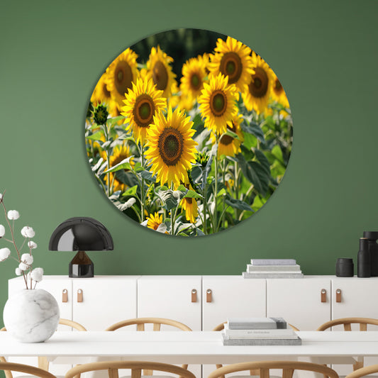 Veld met stralende zonnebloemen in de zon forex muurcirkel