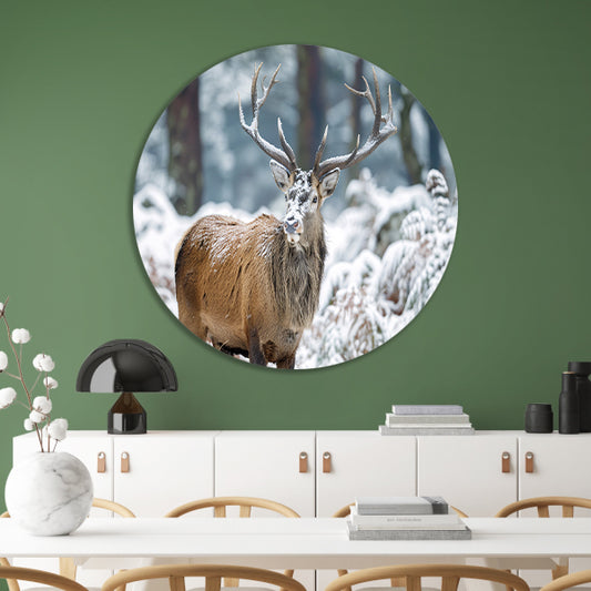 Majestueus hert in sneeuwval vastgelegd forex muurcirkel