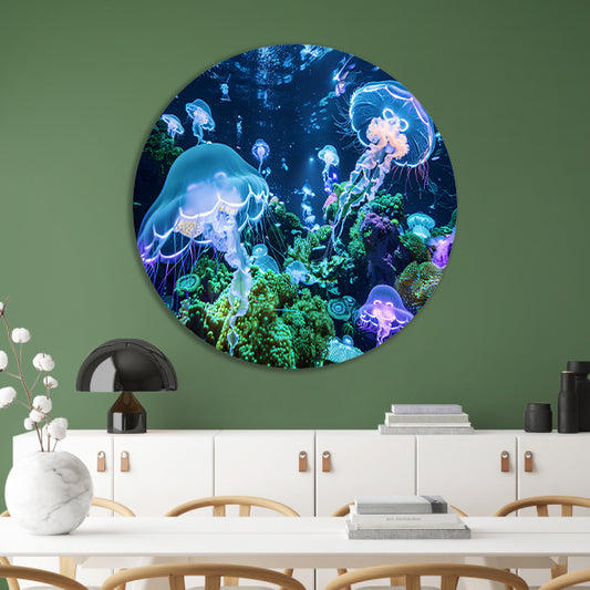 Surrealistische onderwaterwereld met zwevende kwallen forex muurcirkel