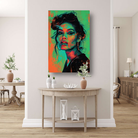 Kleurrijk en dynamisch digitaal portret van vrouw canvas
