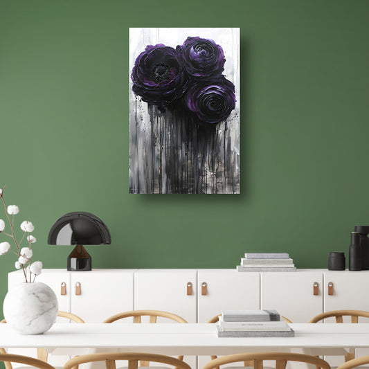 Grote Abstracte Bloemen in Zwart en Paars canvas