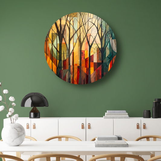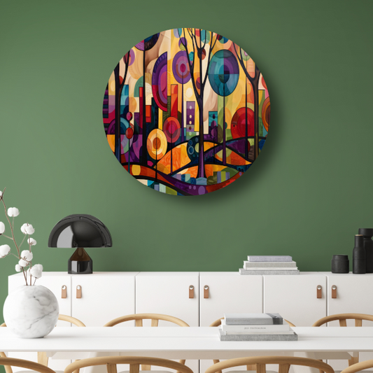 Kleurrijke Abstracte Bomen in Stedelijke Omgeving forex muurcirkel