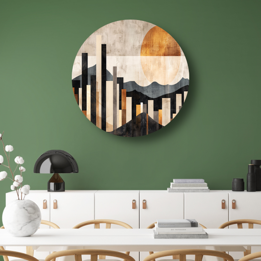 Minimalistische Stedelijke Skyline met Zon forex muurcirkel