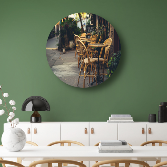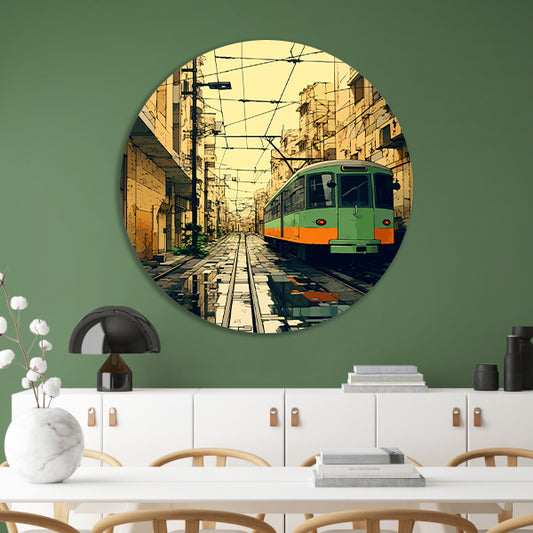 Abstract schilderij van stadsgezicht met kleuren aluminium muurcirkel
