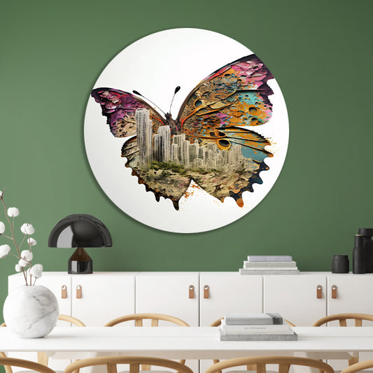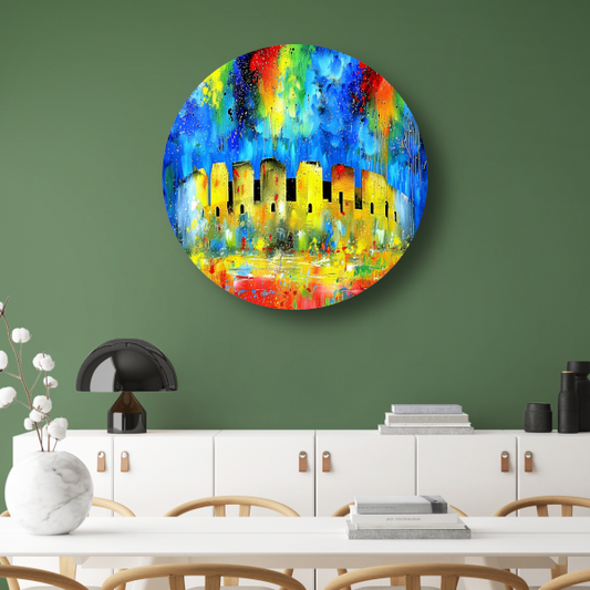 Abstracte stadsgezicht met levendige kleuren aluminium muurcirkel