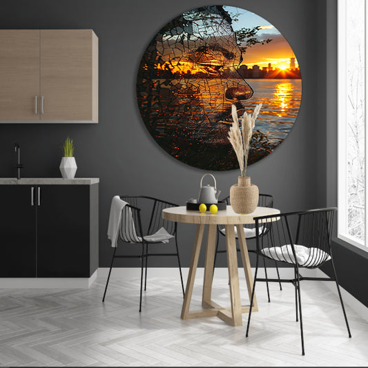 Silhouet tegen zonsondergang in gebroken glas forex muurcirkel