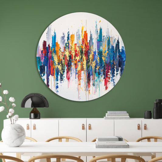 Abstracte stadsgezicht schilderij met dynamische kleuren forex muurcirkel