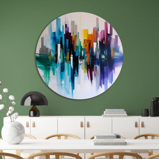 Kleurrijke abstracte skyline met reflecties forex muurcirkel